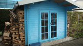 Die Spuren führen ins babyblaue Gartenhaus. Beißender Gestank. Waldemar blickt ins Häuschen. Kann es nicht fassen.