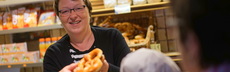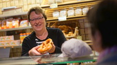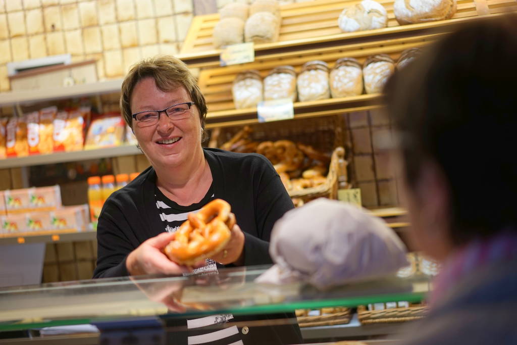 Marianne Feger plaudert ein letztes Mal mit den Kunden, die ab kurz nach sechs den Laden betreten. Was fühlt sie an diesem besonderen Tag? Ihre Stimme wird etwas leiser, der Gesichtsausdruck wehmütig. "Ich gehe mit einem lachenden und einem weinenden Auge", berichtet sie. Einerseits freue sie sich auf mehr Freizeit, andererseits hänge sie am Bäckereibetrieb und dem Kontakt mit den Menschen vor Ort. "Viele Leute haben mir gesagt, wie schade sie es finden, dass wir aufhören. Aber sie gönnen es uns auch."