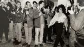 Schauspiel-Prominenz in den 1990er-JahrenUlrich Marx (Vierter von links) trifft mit Paparazzi-Kollegen auf Joan Collins. Marx glaubt sich zu erinnern, dass die Diva damals in Baden Baden zu Gast gewesen ist.